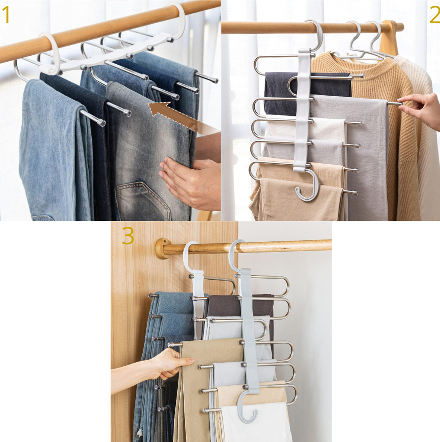 Chaque cintre peut accueillir jusqu'à 5 pantalons, tout en restant solide et pratique.